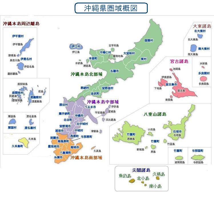 【 美ら島沖縄-前編 】 『 沖縄本島 』 を散策しましょう。 〓沖縄県の圏域〓 東西→約1,000km、南北→約400kmの広大な圏域。 49の有人島と111の無人島及び岩礁が点在する島嶼。 (0.01km²以上の面積を有する島及び岩礁をカウント) 有人島では 北端→伊平屋島、南端→波照間島 東端→北大東島、西端→与那国島が位置する。 波照間島は有人島での日本最南端 与那国島は日本最西端である。 ※群島構成 北東から南西方向に島々が点在してのびる。 それらは次の六区分の囲みで呼称される。 ①沖縄本島 ②沖縄本島周辺諸島 ③大東諸島 ④宮古諸島 ⑤八重山諸島 ⑥尖閣諸島 ※参照 沖縄県圏域概図 〓沖縄本島の地域区分と帰属市町村〓 沖縄本島は三区分されて呼称される。 ①南部地域 ②中部地域 ③北部地域 ※南部地域と帰属市町村 那覇市 豊見城市 糸満市 南城市 与那原町 南風原町 八重瀬町の4市・3町がある。 南部地域総面積197km²、人口約53万人 通常「南部地域」と呼ぶ場合は那覇市を除いて指す。 別称で島尻(しまじり)地区とも云う。 この地域には県都:那覇市がある。 第二次世界大戦で日本軍は首里城に軍司令部を置いた。 沖縄本島に上陸したアメリカ軍は凄まじい砲撃と空襲を 加えながら首里城方面へ進攻した。 首里城は壮絶な地上戦での戦火を受けて灰と化した。 戦闘は那覇市街地の九割を焼失させて壊滅状態にした。 一般市民も防衛隊を組織して日本軍と共に戦闘に参加し、 多くの命を落とした。 焼け野ヶ原にされた那覇市であったが、 今では県の政治・経済・文化の中核地として再興された。 首里城も復元されて県民の心の拠りどころとなっている。 ※中部地域と帰属市町村 浦添市 宜野湾市 沖縄市 うるま市 読谷村 嘉手納町 北谷町 北中城村 中城村 西原町 の4市・3町・3村がある。 中部地域総面積280km²、人口約58万人 別称で中頭(なかがみ)地区とも云う。 米軍基地が最も集中している地域である。 極東最大の空軍基地「嘉手納米軍基地」がある。 その施設総面積は約19.95km²に広がり、 嘉手納町・沖縄市・北谷町の3市町にまたがる。 規模からして東京・羽田空港の約2倍とも云われる。 基地内には約3,500m滑走路2本を備えた軍用飛行場が ある。 最近の動向は東シナ海や北朝鮮情勢が穏やかで ない故か、偵察機などの離着陸が騒々しい状況である。 沖縄市はコザの名称で親しまれていた。 1974年に名称変更した。 且つては基地の街コザのタウンイメージがあった。 それこそ街の表情が夜と昼では反転状態を映じていた。 1975年まで続いたベトナム戦争の期には、 米軍人・軍属のみでなく、東南アジア、その他諸外国の 商人達が通りを闊歩していた。 ※北部地域と帰属市町村 名護市 恩納村 宜野座村 金武町 今帰仁村 本部町 国頭村 大宜味村 東村の1市・2町・6村がある。 北部地域総面積764km²、人口約12万人 別称で国頭(くにがみ)地区とも云う。 地域の中央を山峰が走り自然と水源地に恵まれている。 その昔は北部全地域を指して山原(ヤンバル)と称した。 時代の流れとともに都市化現象が進んで、 今日では国頭村 東村 大宜味村を指して称される。 森には貴重で稀少な動植物が多く生息している。 多種多様な生物種を擁するところから 東洋のガラパゴスとも称される。 恩納村から名護市に至る西海浜沿いには大型リゾート 施設が数々建立している。 2000年7月に催行された九州沖縄サミットG8首脳 会合会場となった万国津梁館がある。 〓沖縄本島を散策〓 本島を南から北へ主だったポイントを散策しましよう! 下記のポイントが映像からご覧になれます。 ※南部地域のビユーポイント 1.首里城 2.国際通り 3.牧志公設市場 4.平和の礎 5.垣花樋川 6.斎場御嶽 7.首里城 新春の宴 8.糸満ハ-リ- ※中部地域のビユーポイント 1.中城城跡 2.ゲ-ト通り 3.アメリカンビレッジ 4.やちむんの里 5.残波岬 6.全島闘牛大会 7.沖縄全島エイサ-大会 ※北部地域のビユーポイント 1.沖縄美ら海水族館 2.今帰仁城跡 3.比謝大滝 4.慶佐次湾のヒルギ林 5.辺戸岬 6.ピ-ジャ-オ-ラセ- 7.塩屋のウンガミ |